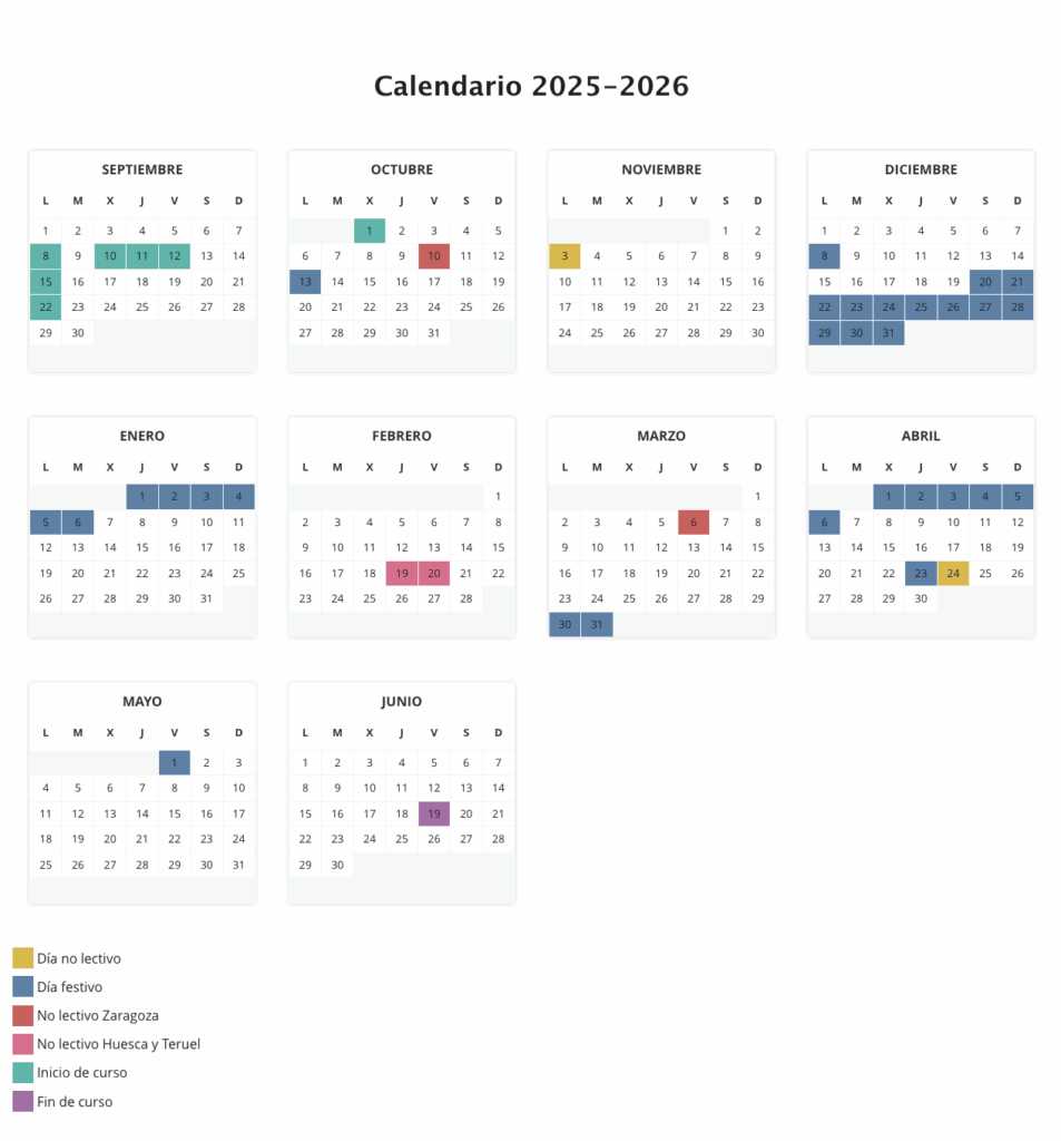 Curso 2025-2026: Las actividades lectivas del tercer curso de las enseñanzas de primer ciclo de Educación Infantil en CEIP, CPI, y CRA, del segundo ciclo de Educación Infantil, Educación Primaria, Educación Especial y Educación Secundaria Obligatoria se iniciarán el lunes 8 de septiembre de 2025 y finalizarán el viernes 19 de junio de 2026. Las actividades lectivas de Bachillerato del curso 2025-2026 se iniciarán el miércoles 10 de septiembre de 2025 y finalizarán el viernes 19 de junio de 2026